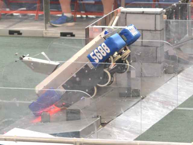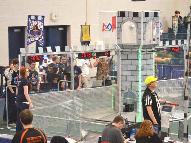 "Shorts, Outtakes and Rants" Kids and Robots March 25, 2016 The FIRST Robotics Challenge is an increasingly popular event that brings the thrill of competition to technologically-oriented high school kids, and the competition I attended in March of 2016 was filled with fast and furious action, lots of noise and cheering, plenty of challenges and a good time for all. This year's challenge, called "FIRST Stronghold" is complex -- it's developing a robot to compete in a medieval-appearing contest that vaguely resembles a basketball game. Robots will have to overcome a variety of physical obstacles while gathering "boulders" (actually balls about the size and weight of a basketball) and shoot them at openings in a "castle." If enough boulders can be shot into the castle, the robot will be able to score more points by climbing the castle wall. If that wasn't enough, when it comes down to the actual game, teams of robots are formed. While the robots will be controlled remotely during part of the game, in parts of the game they will have to operate autonomously, without human intervention. And, oh yes, the students have about six weeks to design, build, debug and practice with their creations before heading into competition. Not surprisingly, the kids involved in the competition aren't exactly the normal kinds you would expect to find around a high school sports event. The best description I can think of is that they're made up of the kinds of kids you'd expect to build a robot for fun. At the meet I attended, there weren't a lot of kids running around that you'd expect would know what to do with a football in their hands. Though there isn't a huge percentage of girls involved, they are present and from what I could tell tended to be among the serious competitors. It's more than just kids and robots -- each team showing up brought their own cheering sections with them. With "FIRST Stronghold" having a vaguely medieval theme, there were cheering sections that were dressed about like you'd expect for a renaissance faire, and that just added to the fun. All the teams are known by their numbers, rather than by a school or team name, so there were people cheering for "5688" or whatever. Some teams had large numbers, even lighted ones, to hold up to cheer their robot on. How well do the robots work? That's not easy to explain. They worked better than I expected, and worse, not necessarily depending on the team. In general, I would have to say they moved more jerkily and less controlled than I expected. There are some general rules for the robots but there is a lot of room for creativity, and sometimes it backfires. One team I watched had a four-wheel robot with a heavy top section that supposedly gave very accurate boulder shooting. However, I never saw it get a chance because with the high center of gravity, every time it hit an obstacle it went over on its back and stayed there for the whole two and a half-minute match. It looked good on paper but not on the playing court. While competition is furious on the playing field, it's less so back in the pits and back home where the robots are built. There's a tradition of helping each other out, and if a new team runs into problems they know they can ask an older team for help and advice. Several times during the matches a robot got hung up on an obstacle, and when that happened often a neighboring team from the same alliance run their robot into the team in trouble in an attempt to knock them free, and it always drew huge cheers from the well-packed arena. There were no points given for sportsmanship but it was highly appreciated. It's clear that these things are not built out of string and duct tape, although there was some of both to be seen. They're expensive little critters, and there's a lot of corporate support. You can see both the money invested in these things and the team pride just by walking through the parking lot, where I noticed several enclosed trailers lettered for this or that team. The kids get a lot of adult support from their advisors, and some of them are very knowledgeable about what they're doing. It's a tough challenge -- but there are a number of smart, technologically oriented kids who are taking it on. They're having a lot of fun out of this, and they are learning things that weren't taught in school even a few years ago.